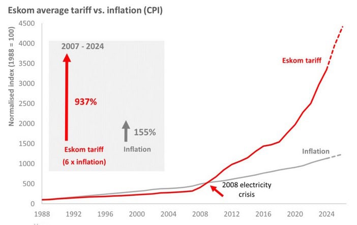 The potential for South Africa’s onshore gas to become, not only a solution for South Africa’s energy (not simply an electricity) crisis, but also providing South Africa with energy security, has largely been ignored in most energy planning modelling in favour of alternative and expensive energy solutions. It is common cause that South Africa must recognise and appreciate that, for our country to achieve inclusive growth, it requires, not only affordable electricity, but also affordable resources from which energy can be generated. Policy failures, together with numerous accounts of corruption, has led to electricity tariff increases of 937%, while inflation increased by 155% for the period 2007-2024, as reported in the August 2024 article by Power Optimal (https://poweroptimal.com/2024-update-eskom-tariff-increases-vs-inflation-since-1988-with-projections-to-2026/). Further annual Eskom electricity tariff increases are expected for 2025, with an increase of 36.1% proposed.